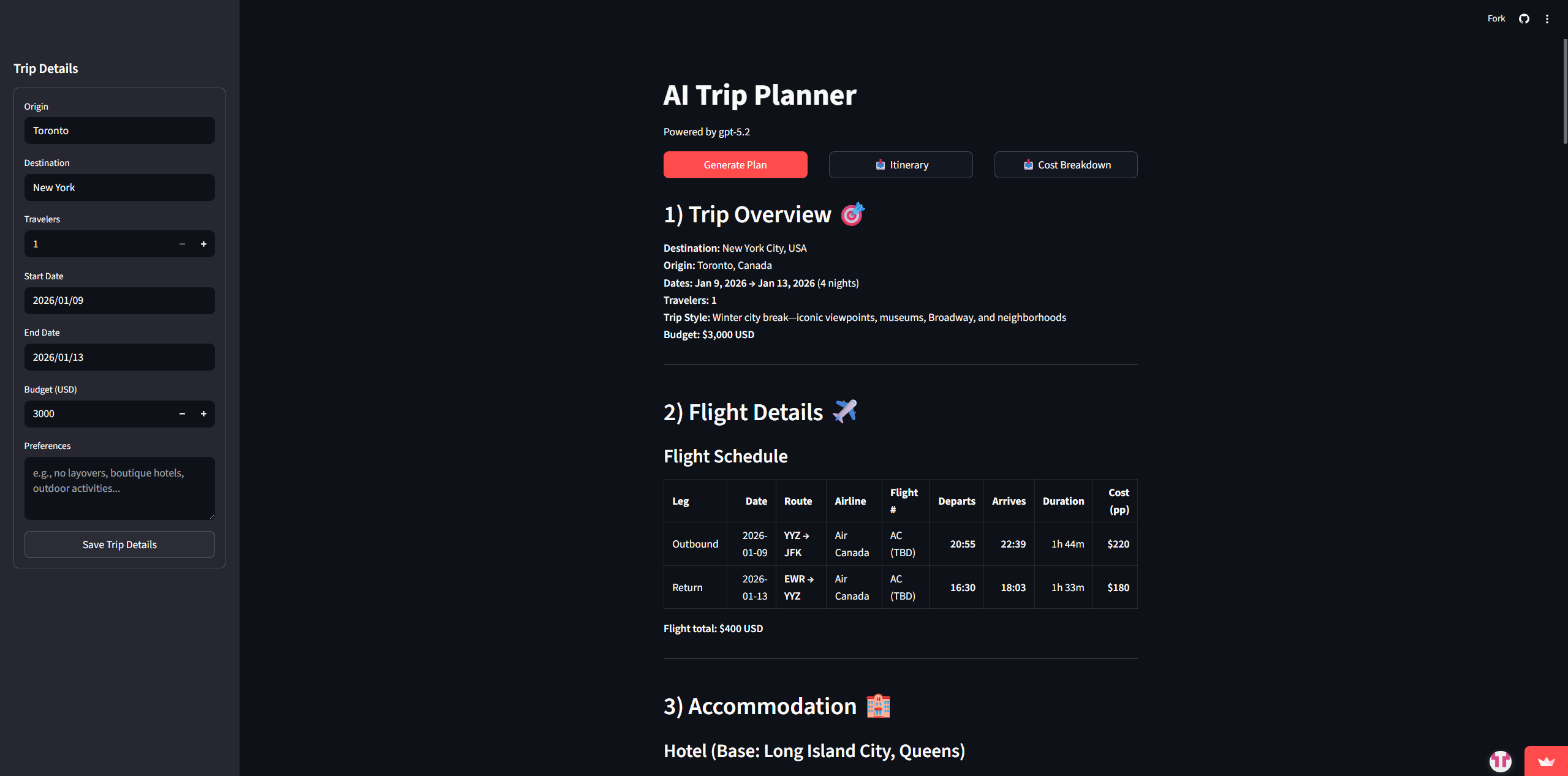 AI-powered travel itinerary generator for customized trip planning.